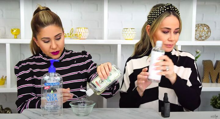 3 TSP Aloe Vera. Put your aloe vera gel in a small jar or dish Add witch hazel and mix. Dengan aloe vera gel juga kamu bisa lho membuat setting spray agar makeup mu.